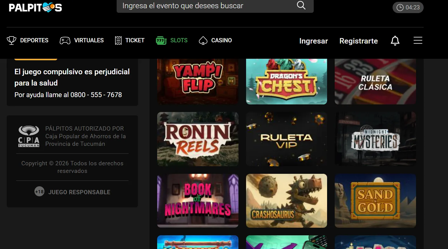 Verificamos la presencia de Palpitos como marca de juego orientada al mercado argentino, con foco operativo en la provincia de Tucumán. Según la información pública que la propia marca comunica (2026), ellos ofrecen una plataforma de apuestas y casino que incluye casino en vivo, tragamonedas (slots), ruleta y apuestas deportivas, disponible en versión web responsiva y mediante una APK para Android (Palpitos 24 móvil / Palpitos 24 Tucumán).